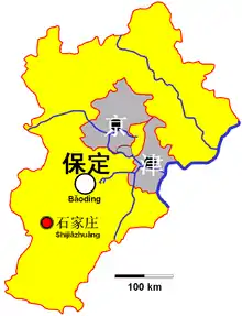 保定为清代直隶省省会及直隶总督驻地,在民國時代及共和國成立初期亦長期為河北省省會,现为国家历史文化名城、京津冀地区中心城市之一[3],雄安新区即位於轄內。