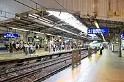 東海道線 : 行駛東海道本線東京站方向 - 本站 - 川崎站方向列車線的中距離電車與特急列車。同時也行駛經東京站直通東北本線(宇都宮線)、高崎線、常磐線的上野東京線系統列車。常磐線方向除部分臨時特急、急行列車以外從本站發車。 車站編號「JT03」