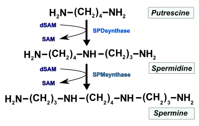 儘管已知多胺是在高度調節途徑的細胞中被合成的,但他們的實際功能卻還沒完全解明。作為陽離子,他們和DNA結合,在結構上它們被發現與陽離子化合物在規則的間隔之間(不同於Mg2+