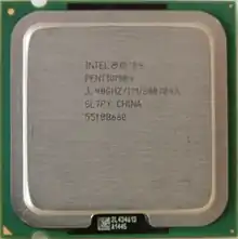 Mobile Intel Pentium 4 Processor[2],Intel Mobile Pentium 4處理器與Mobile Pentium 4-M不同,外觀上在大的差別就是Mobile Pentium 4上與桌上型Pentium 4處理器一樣有晶圓上的鐵蓋,INTEL將它定位使用筆記型電腦取代桌上型電腦的使用者,他與桌上型的Pentium 4一樣使用Socket 478的插槽 ,它也提供Hyper-Threading超執行緒與EIST的功能,FSB也比Mobile P4-M的400高,達到FSB533。新型的Mobile P4採90奈米製程,最高時脈高達3.46GHz以及1MB的L2快取。