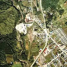 1977年的日高町站與方圓約750米範圍。下方是鵡川方向。