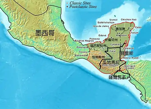 | 墨西哥的尤卡坦半岛,以及危地马拉和洪都拉斯等 | |