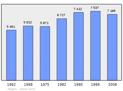 瓦洛涅于2021年1月1日时的人口数量为6791人。