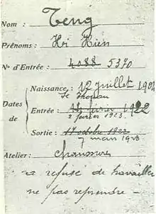 1920年10月19日,邓与叔父邓绍圣乘船抵法国马赛[40]:12。邓和同学们乘汽车前往巴黎[10]:44。法华教育协会安排以邓希贤名字到诺曼底小城巴约(又译“巴耶”)的巴约男子中学就读[40]:12。10月21日晚,邓等24名学生來到距巴黎200多公里的巴约,進入巴约中学学习,邓的学号是1421[10]:45。巴约中学没有设立「附属高级初等学校」,校长把20多名中国学生安排在学校商务系学习,单独开班[10]:46。