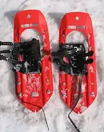 绑定通常使用若干织带,通常是三根,用来将脚部和雪鞋捆在一起。一些款式的雪鞋在脚尖的位置使用的是杯状的设计。一个很重要的事情就是使用者能够很方便的操控这些织带,因为不管是解除还是收紧绑定,双手不带手套暴露在寒冷环境中都有可能导致冻伤的发生。在穿雪鞋的时候需要注意的是,左脚和右脚是有区别的,你可以通过收紧和解开绑定的织带头来判断,他们总是要对着身体外侧,以此避免在行进过程中被反复踩踏。