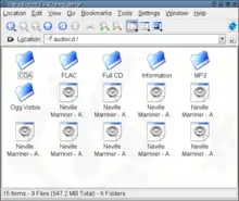 Konqueror同样也可以用于本机的目录结构,可以在地址列中输入位置,或在浏览器窗口中选取项目。而且允许不同的显示模式,每种不同的模式都有不同的图标及配置。档案能够被执行,显示,复制、移动以及删除。